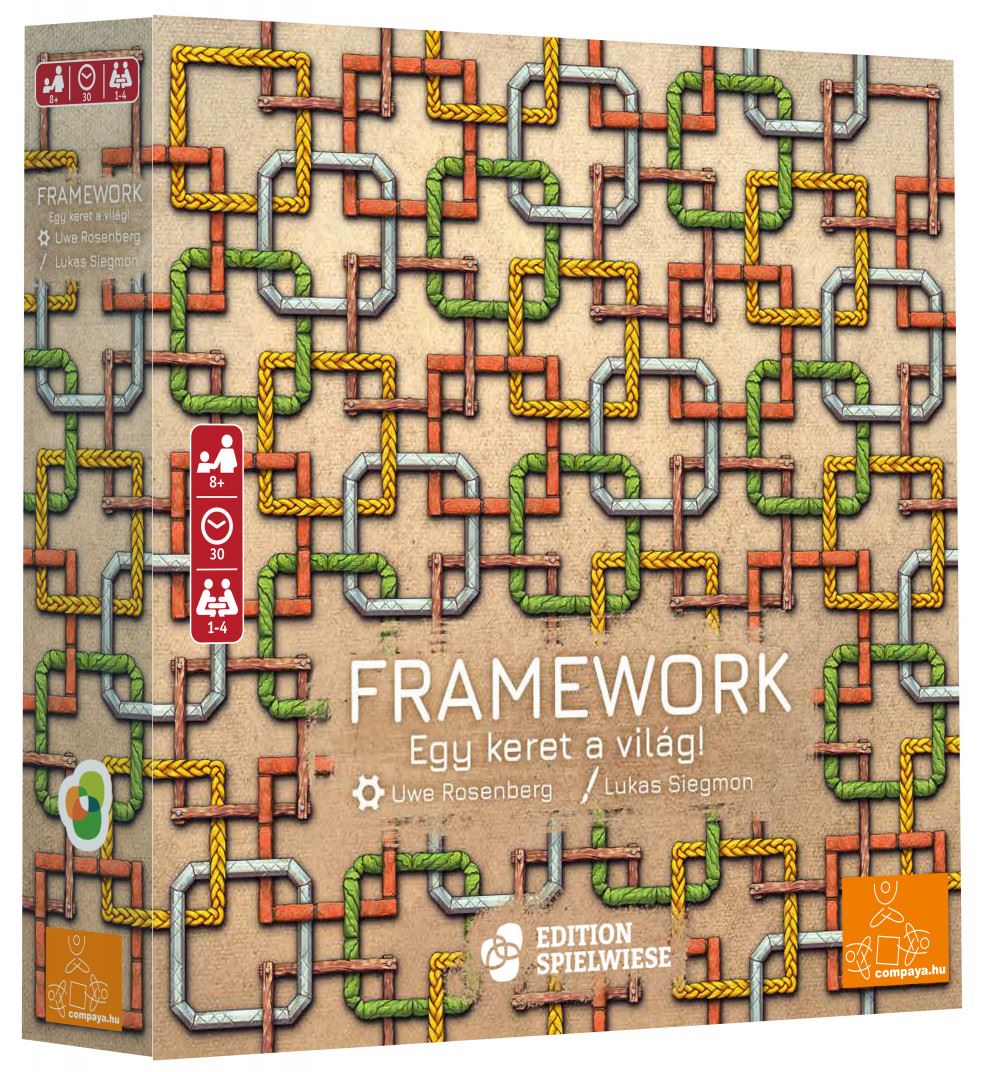 A Framework egy absztrakt lapkale rakó játék Uwe Rosemberg től, amiben előrelátásra és jó (B) tervre van szükség a cél eléréséhez!60 „egyszerű” és 60 „összetett” lapkából áll, játékosonként 22-22 jelzővel. Egy körben a kezdő játékos húz eggyel több lapkát, mint ahány játékos van. Minden játékos választ egy lapkát. A kezdő játékosnak kötelező az utolsó lapkát elvenni. Amikor elveszel egy lapkát, helyezd azt legalább egy másik lapka mellé a tabló dra, majd nézd meg, hogy végrehajtottál-e valamilyen feladatot . A feladat akkor teljesül, ha legalább annyi, és olyan színű keret van vízszintesen és/vagy függőlegesen, amennyit a feladat megkíván.