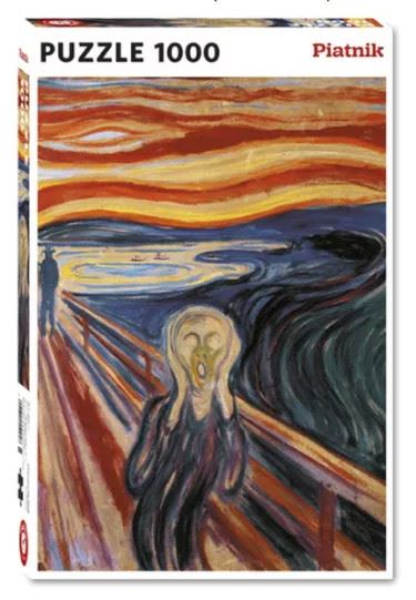 Fedezze fel a Piatnik gyártó által kínált, kiváló minőségű 1000 darabos kirakós puzzle-t, amely Edvard Munch világhírű „A Sikoly” című festményét ábrázolja. Ez a lenyűgöző puzzle nem csupán egy kihívást jelentő szabadidős tevékenység, hanem egyben egy művészeti élményt is kínál, amely során a résztvevők közelebbről ismerkedhetnek meg Munch expresszionista mesterművével.